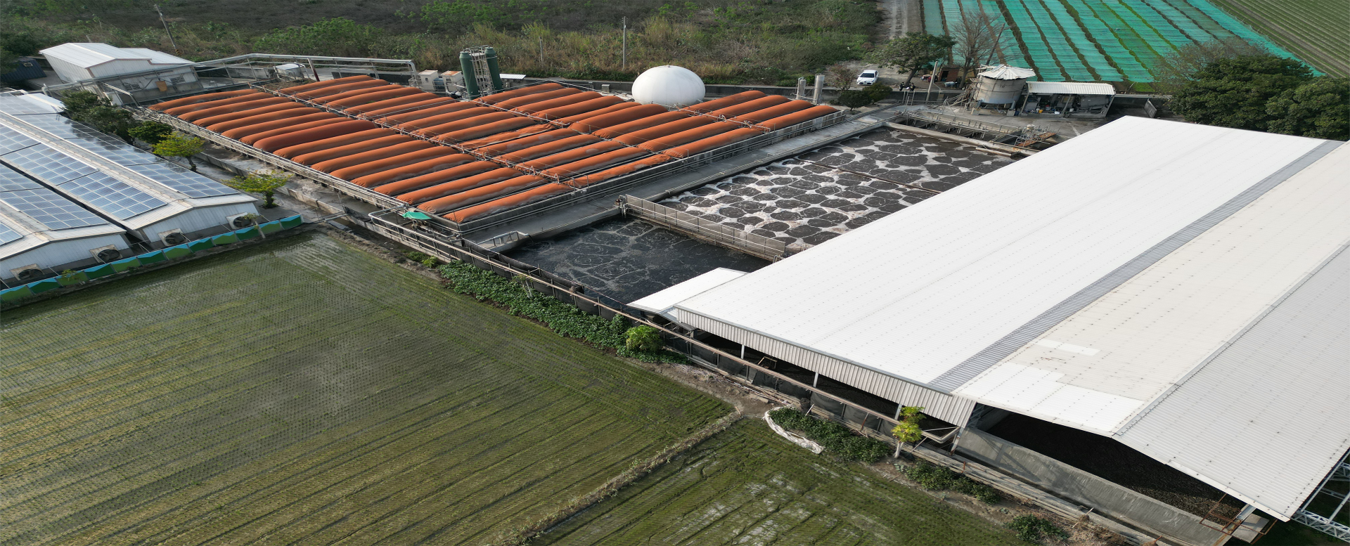 More簡 介 本場位於二崙鄉大庄村,屬於一貫式專業養豬場,全場飼養規模為7,850頭,並受託處理三久(一)牧場、三久(二)牧場、三久(三)牧場、三久(A)畜牧場等四場廢水,共計15,850頭,每天產生廢水量約300 CMD。 推動歷程 洪董事長於創業時,即提倡對環境友善、重視養豬場防疫問題並將產業推動永續發展做為經營之理念,因此十分認同環保署推動之「沼液沼渣農地肥分使用」之政策,相信若能以友善大地做為出發點,將可創造土地、環境及養豬農民三贏的局面。 陸續得到16位農民的響應並簽署合作同意書,於105年9月取得核定函,施灌作物涵蓋大蒜、地瓜、花生及菠菜等6種作物,施灌面積達9.9771公頃,施灌量每年5,226.4公噸,由於施灌成效極佳,於107年申請新增9筆農地,總施灌面積達12.66公頃,施灌量每年達6,610.8公噸。 成果展現 經過這兩年施灌,農民將施灌沼液與使用化學肥料進行比較,發現成效良好,很多農民陸續來觀摩怎麼使用。以地瓜為例,地瓜施灌後生長良好,地瓜葉較大片地瓜的形體也較光滑,甜度較高且幾乎完全看不到病蟲害等優點。